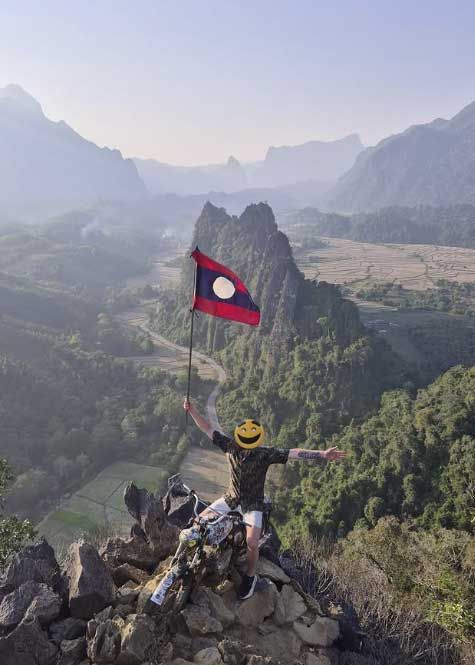 Der Nam Xay Top View in Laos ist ein atemberaubender Aussichtspunkt, der für seine spektakuläre 360-Grad-Sicht auf die üppige Landschaft rund um Vang Vieng bekannt ist. Nach einer kurzen, aber intensiven Wanderung wirst du mit einer Aussicht belohnt, die sich über grüne Täler, Kalksteinfelsen und kleine Dörfer erstreckt. Oben erwartet dich ein rustikales Motorrad, das ein beliebtes Fotomotiv darstellt – ein absolutes Highlight für jeden Abenteurer und Naturliebhaber!
