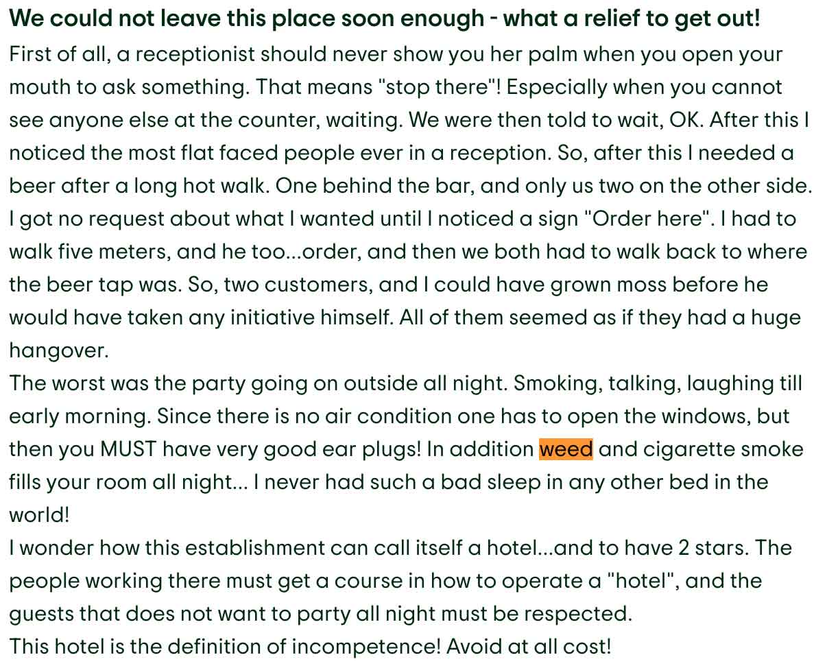 Einzelne Bewertungen zeigen zudem, dass bei geöffneten Fenstern auch typische "Großstadt-Gerüche (Weed)" wahrnehmbar sein können – ein Teil des urbanen Nachtlebens.