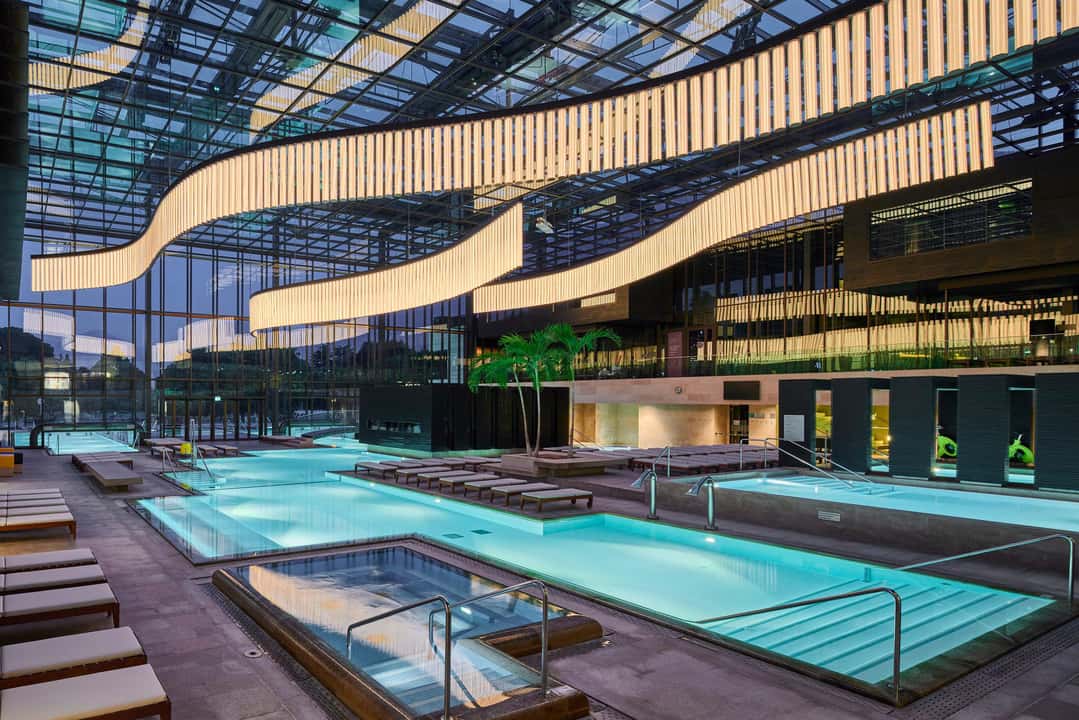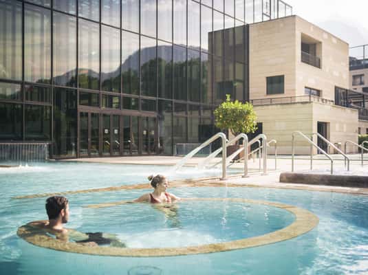 Ein Herzstück der Stadt ist die Therme Meran. Hier treffen alpine Architektur, Thermalwasser und Ruhebereiche aufeinander – perfekt, um Körper und Geist in Einklang zu bringen.